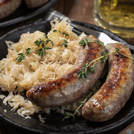 Wurst & kraut – beer braised bratwurst & sauerkraut with mustard sauce