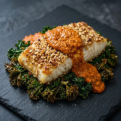 Hazelnut-Crusted Halibut with Romesco Sauce