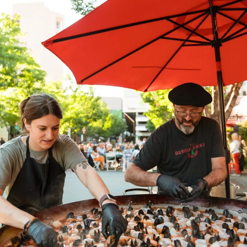 Savor an unforgettable evening of Basque flavor with Tara and Tony Eiguren of The Basque Market—from croquetas and chorizo a la sidra to a stunning seafood-and-chicken paella, all paired with rich stories, wines, and tradition.